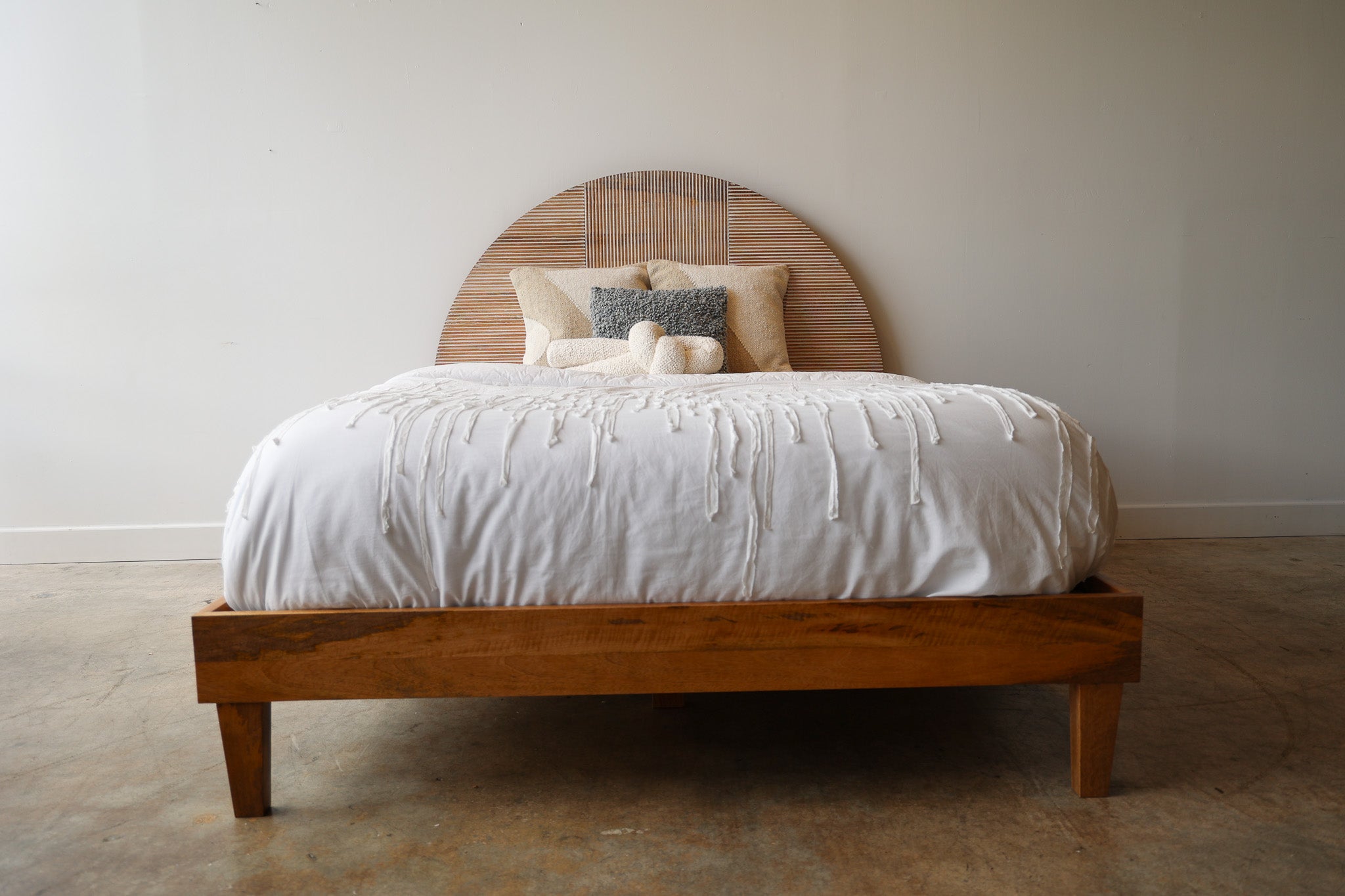 The Eclipse Bed radiates a welcomed contrast between distinctive carved channels and it's rich organic color. Available in both king and queen sizes, this bed is constructed with solid wood for durability. Elevate your sleeping experience with the Eclipse Bed, proudly designed by Dwell Home Market.