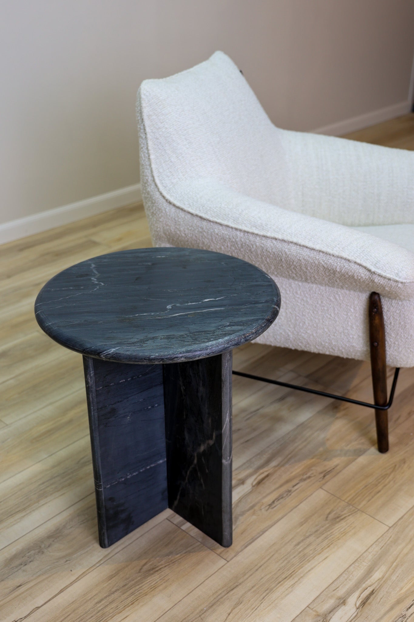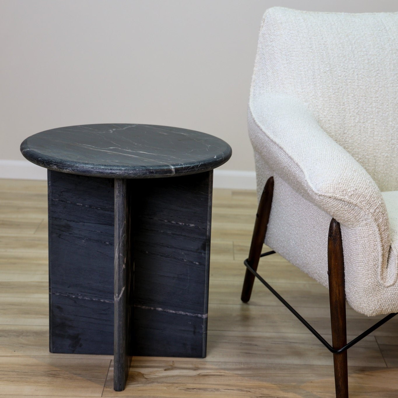 Introduce a touch of elegance to your home with our Raven Black Marble Accent Table. Crafted with a sleek black marble top, this table adds a sophisticated touch to any room. Upgrade your space and enjoy the timeless beauty of natural stone. Limited quantities available.