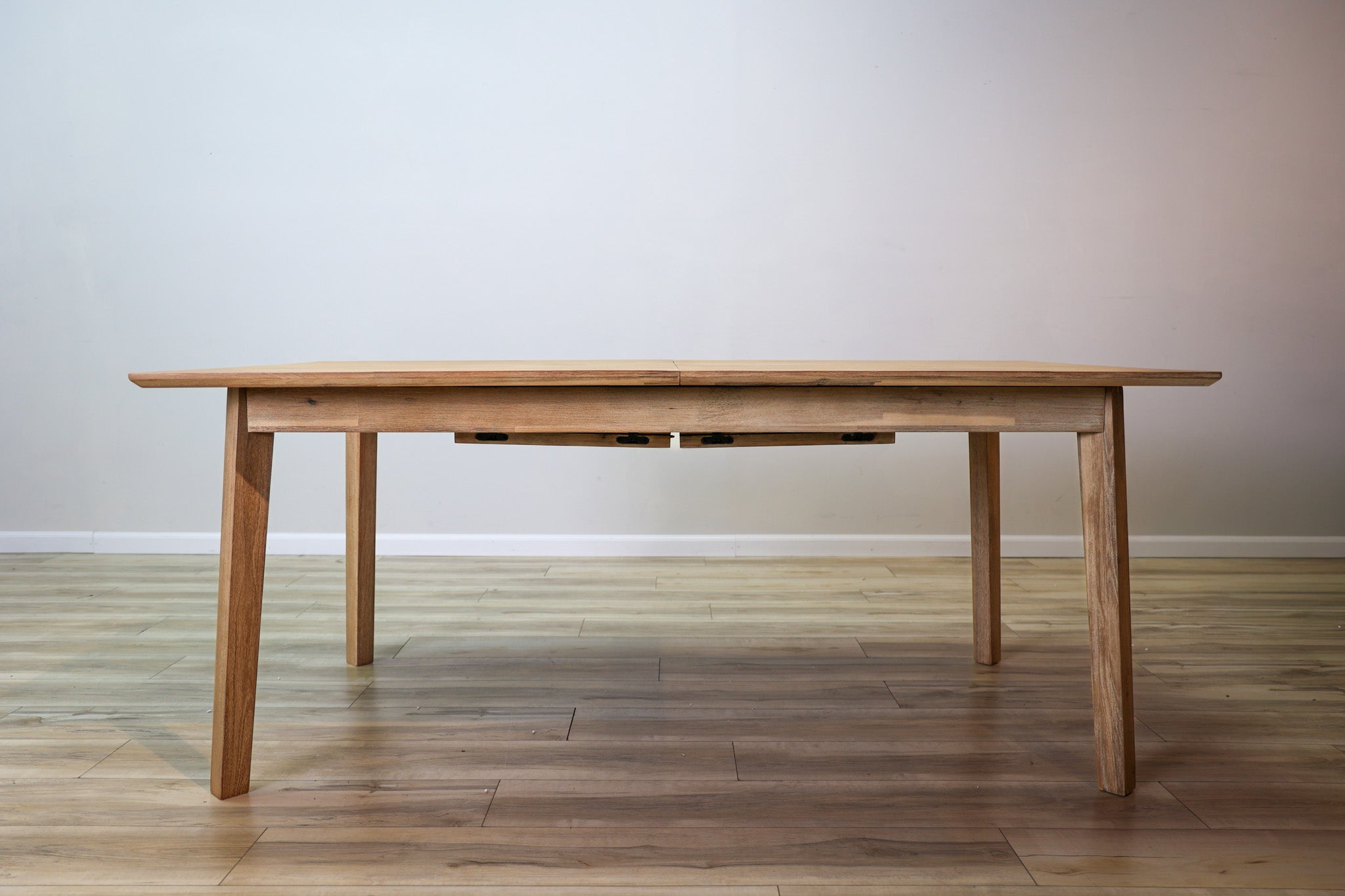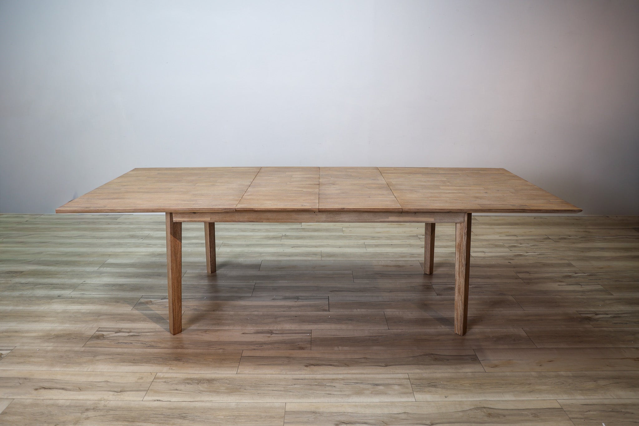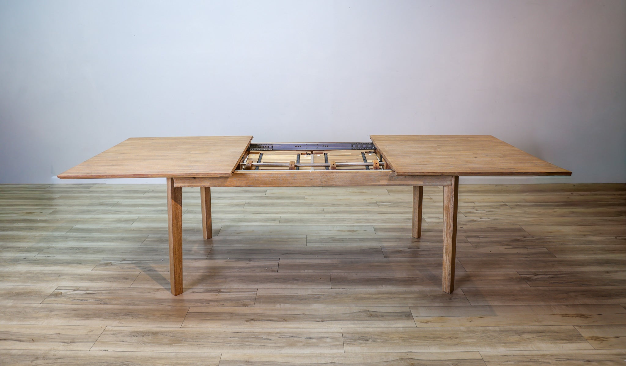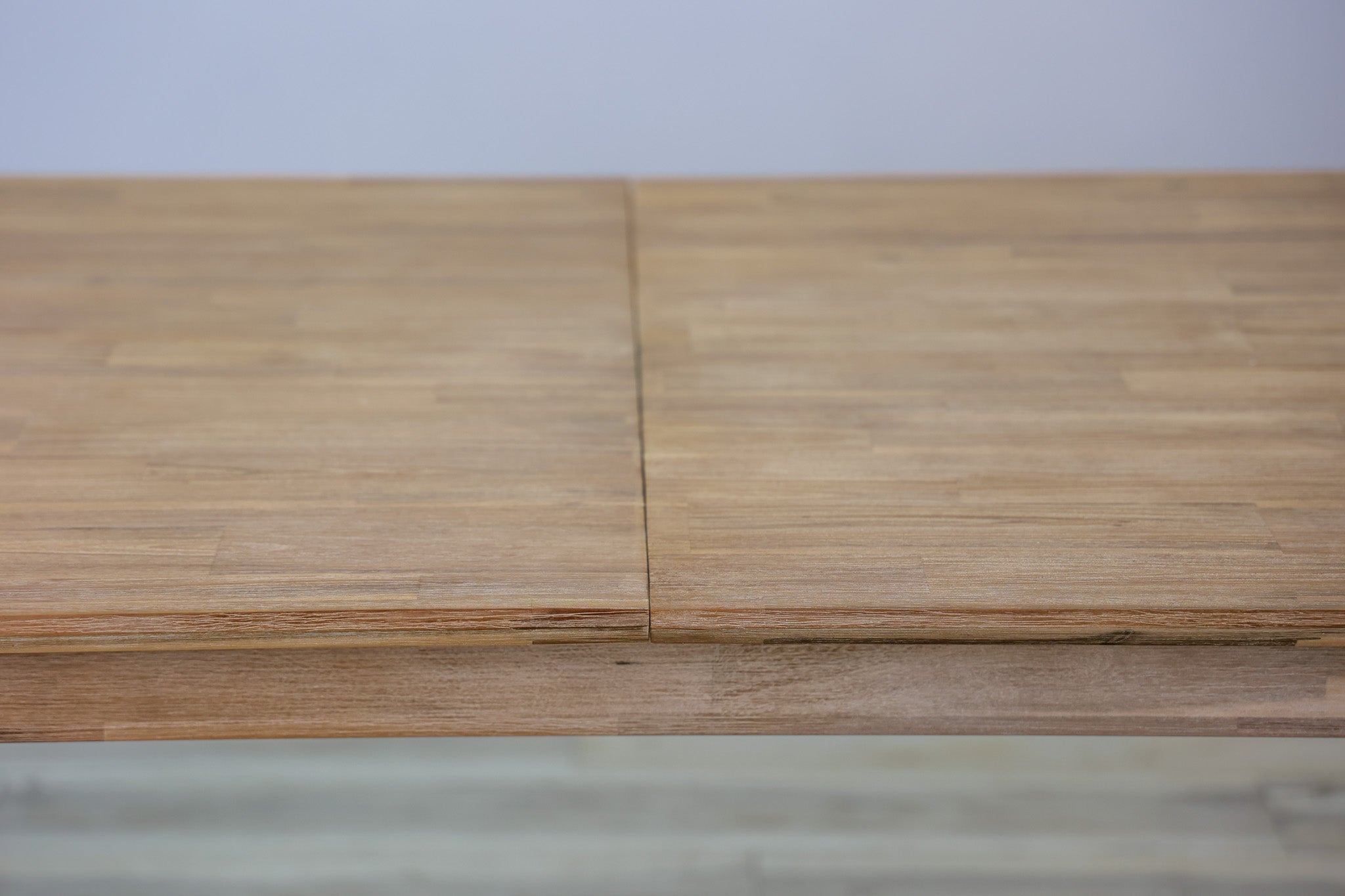 Add some gorgeous versatility to your space with the Reunion Dining Table. This table comes with not one, but TWO leaves giving you three length options - allowing it to expand with your space and needs. Designed with a butterfly leaf system, these leaves will fold out and self store underneath your table, making storing the leaves a breeze! Crafted from solid acacia wood and steel brushed for a textured finish, this is the high quality and versatile table you've been missing from your life!