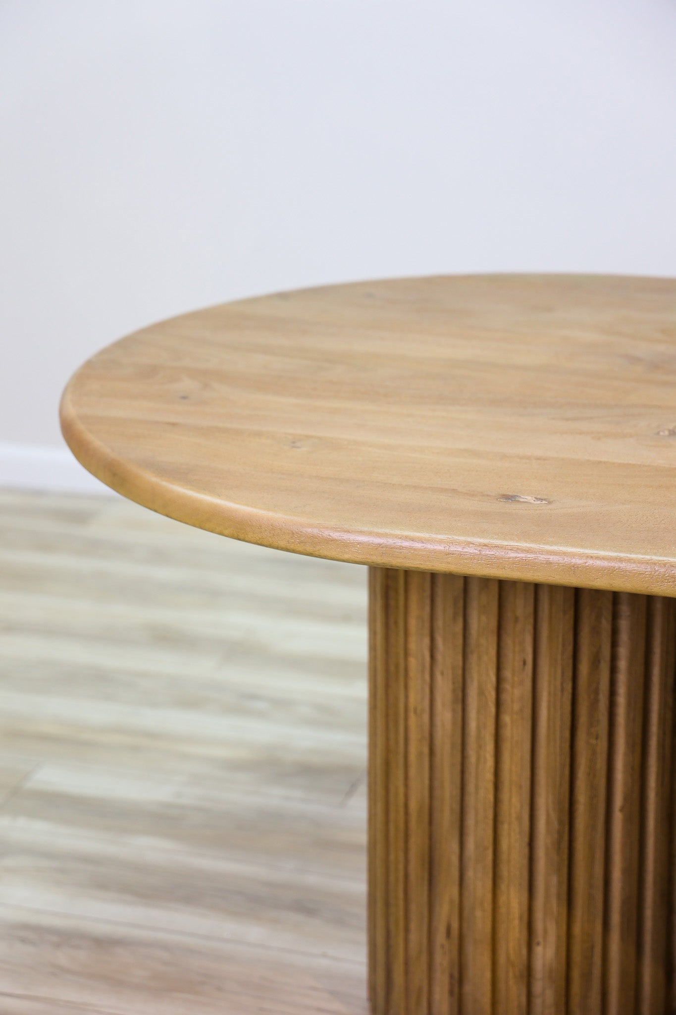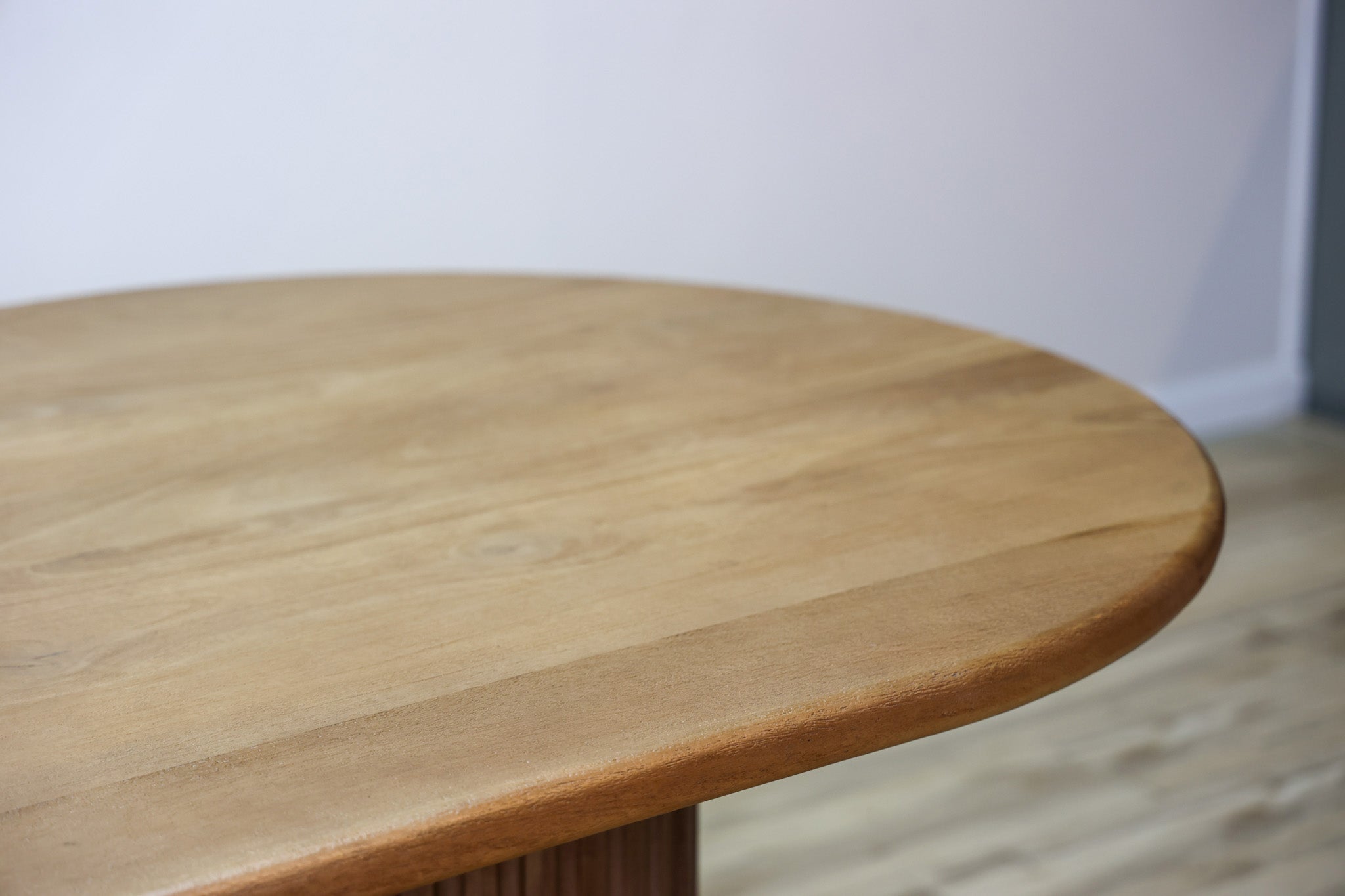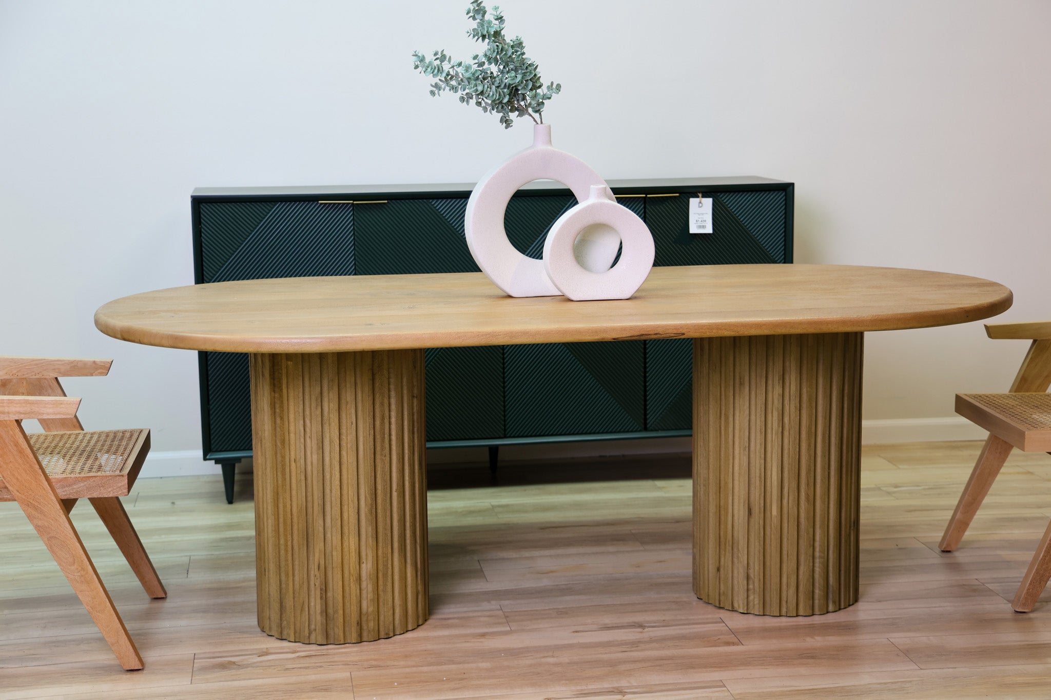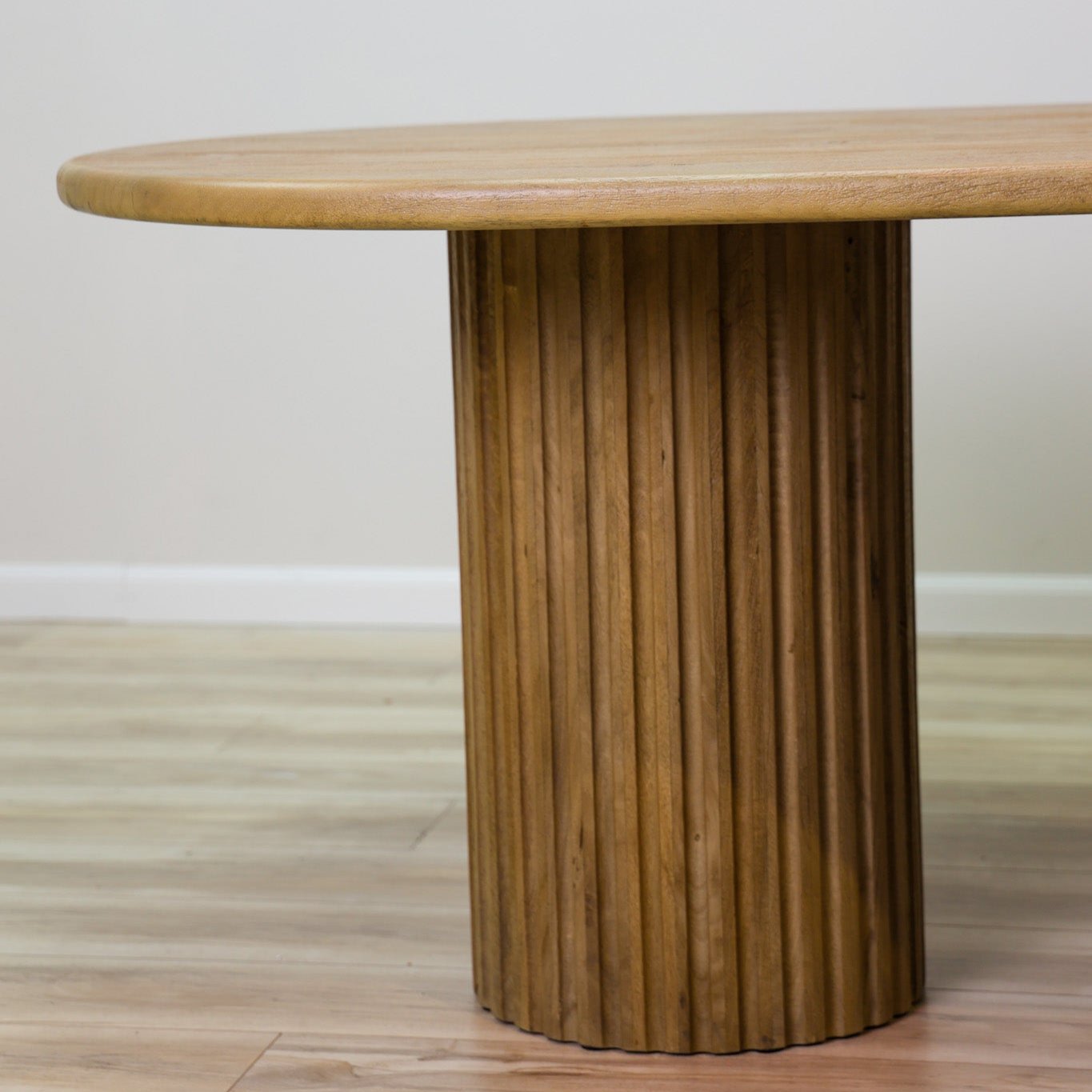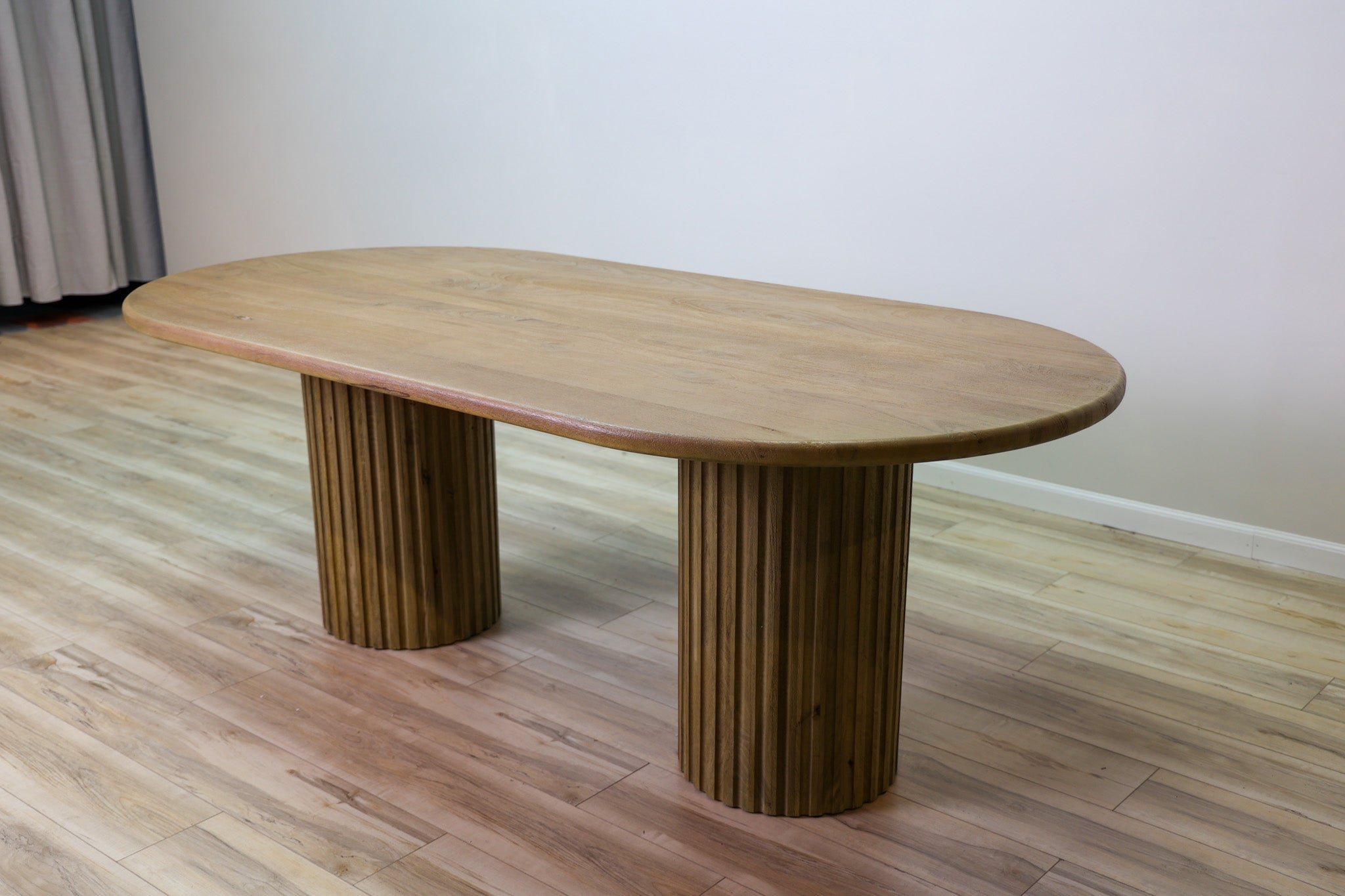 The Stamkos Dining Table features a beautifully crafted stadium shaped top and elegant fluted legs, adding a touch of sophistication to any dining space. Made of quality wood, this table is not only stylish but also durable, ensuring long-lasting use. Upgrade your dining experience with this expertly designed piece.