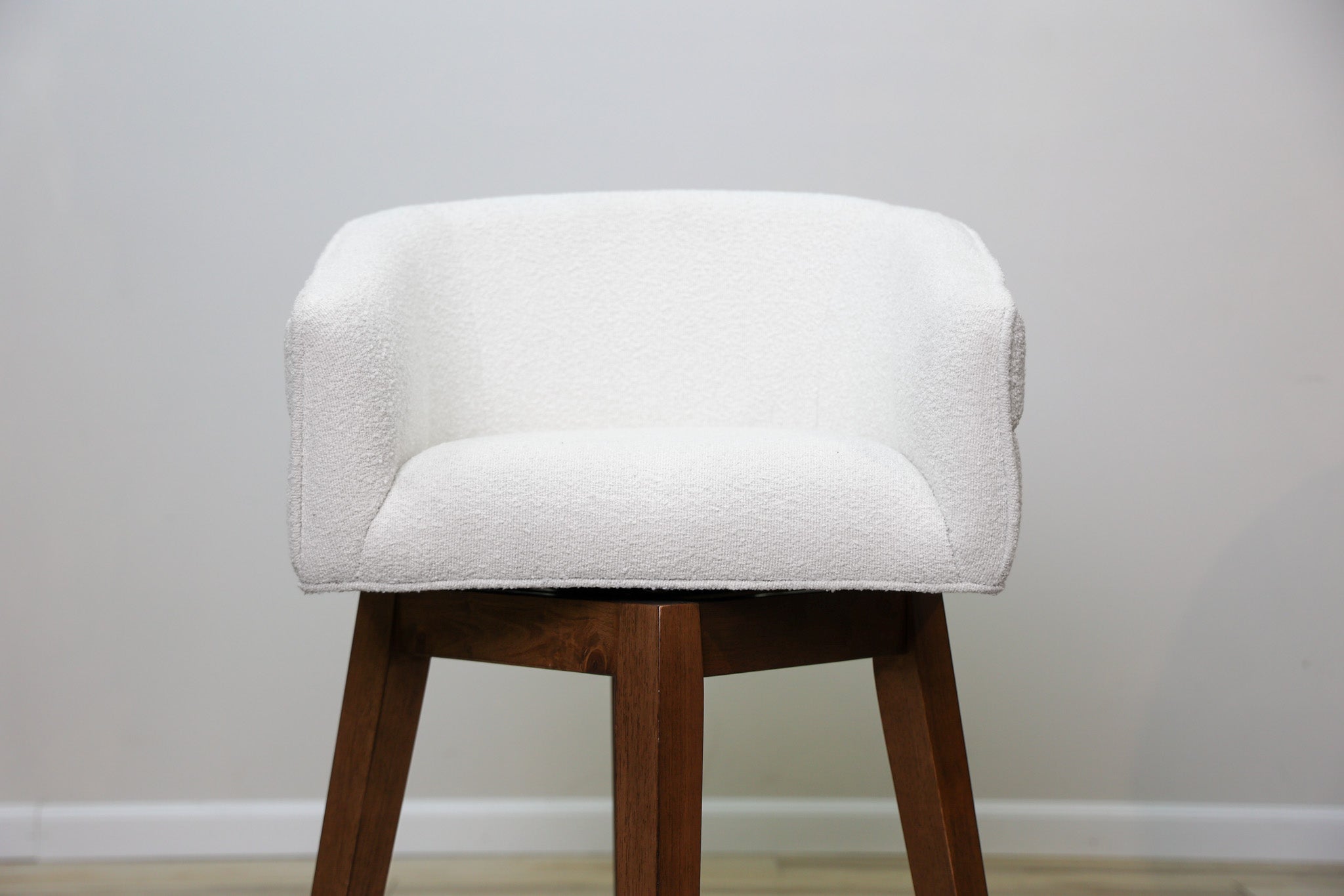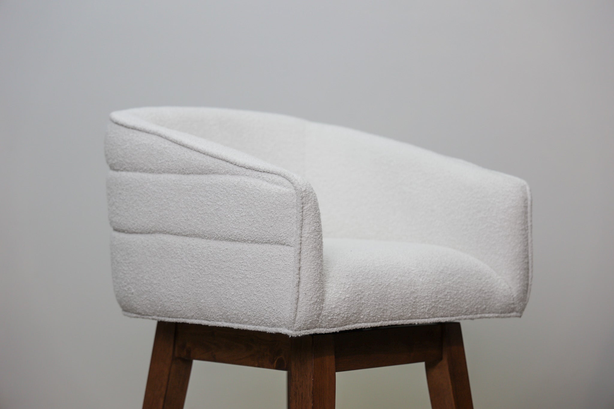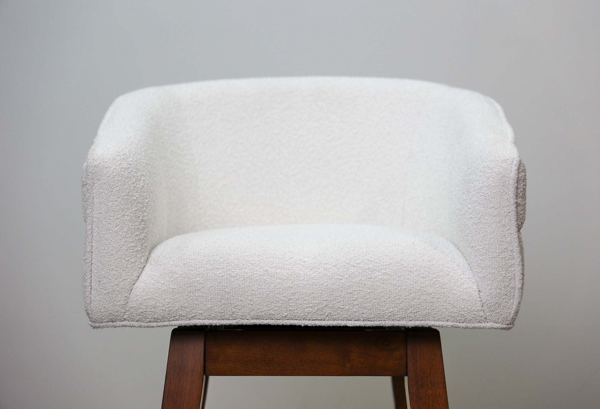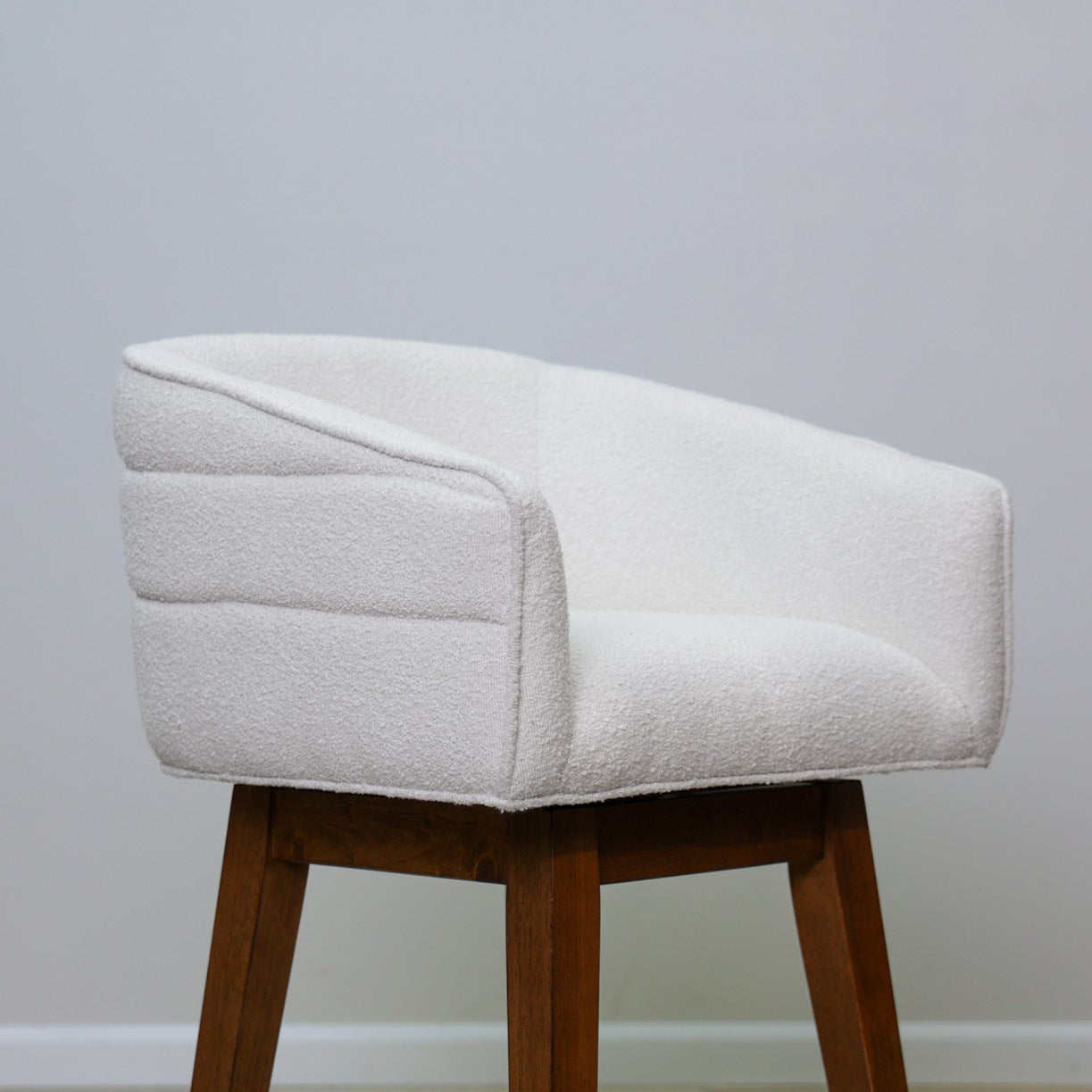Meet the most versatile collection of stools Dwell has ever carried. Each stool has the option to come in both counter and bar height, can be locked or allowed to swivel, and comes in six seating styles, three fabric options and three leg base colors! Mix and match any of these options to your taste! Pictured we have the Barrel seat style with the Salt colored fabric and the Brown base legs at counter height!
