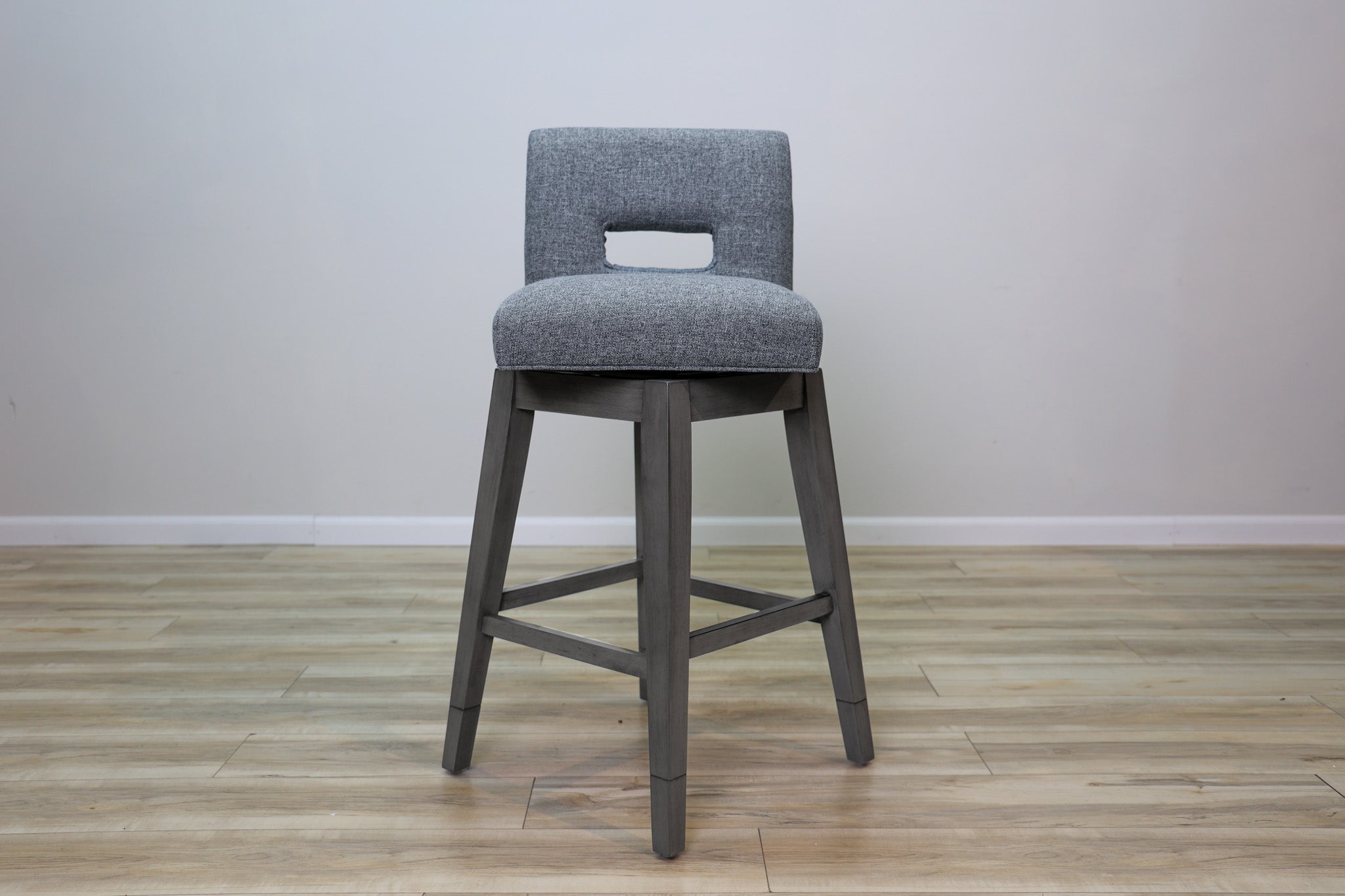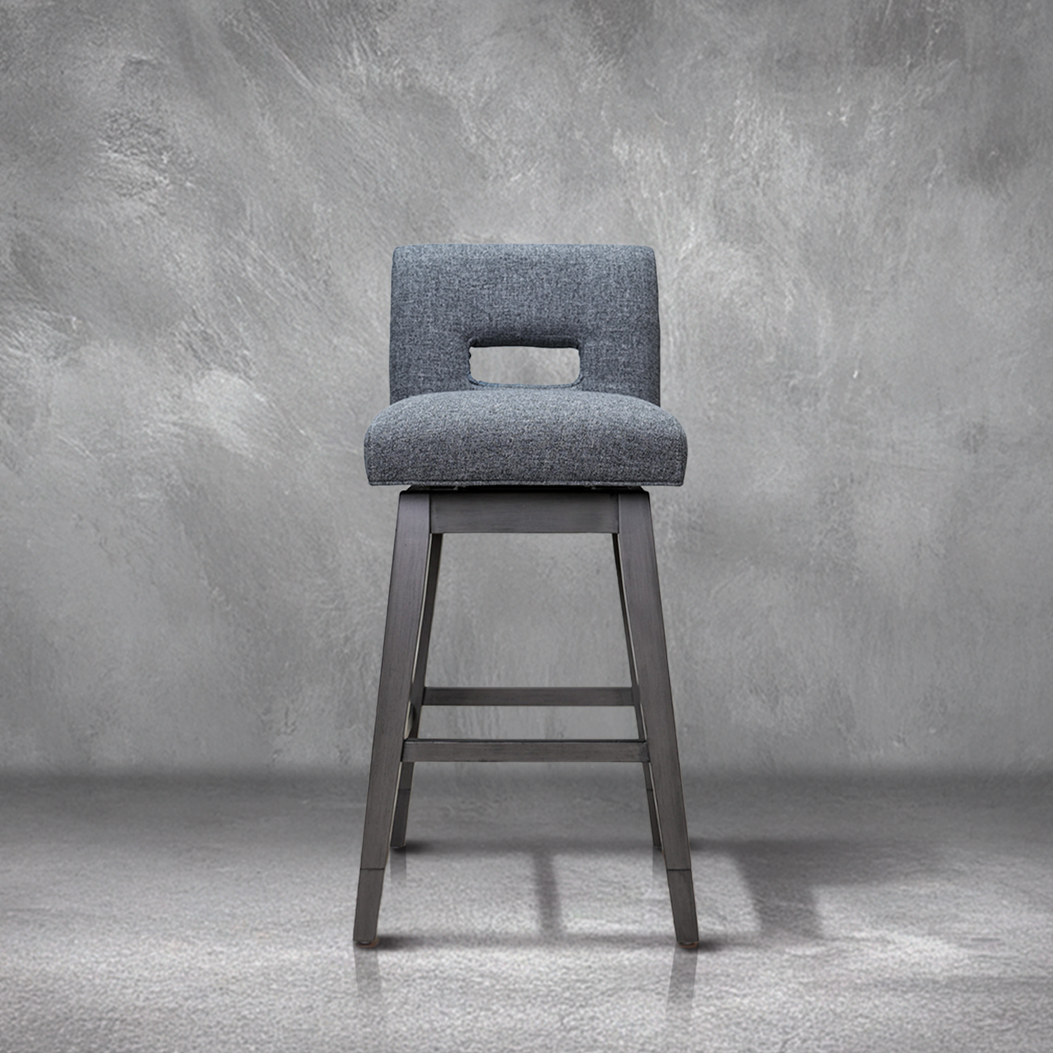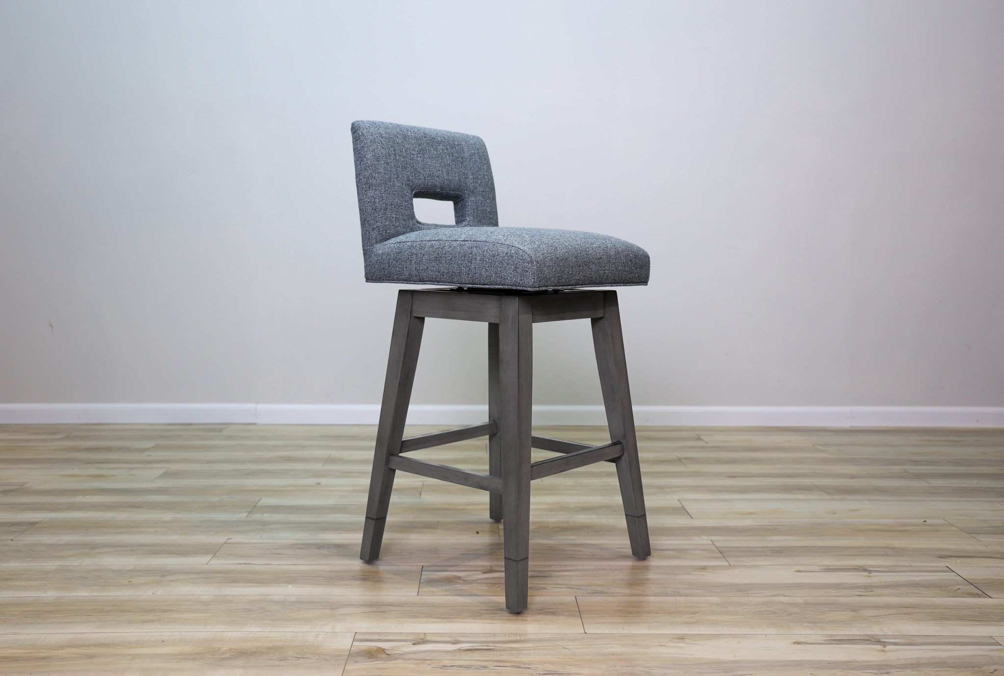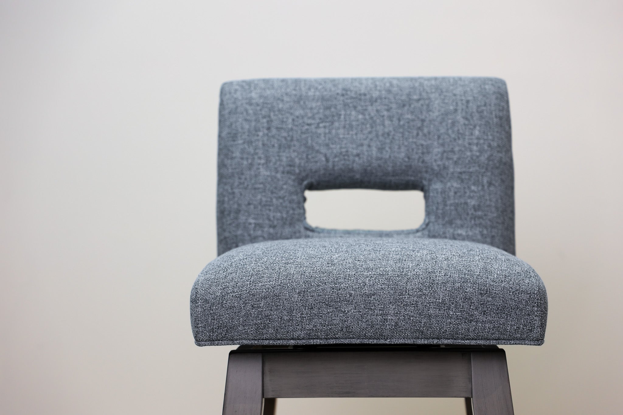 Meet the most versatile collection of stools Dwell has ever carried. Each stool has the option to come in both counter and bar height, can be locked or allowed to swivel, and comes in six seating styles, three fabric options and three leg base colors! Mix and match any of these options to your taste! Pictured we have the Keyback seat style with the Graphite colored fabric and the Gray base legs at bar height!