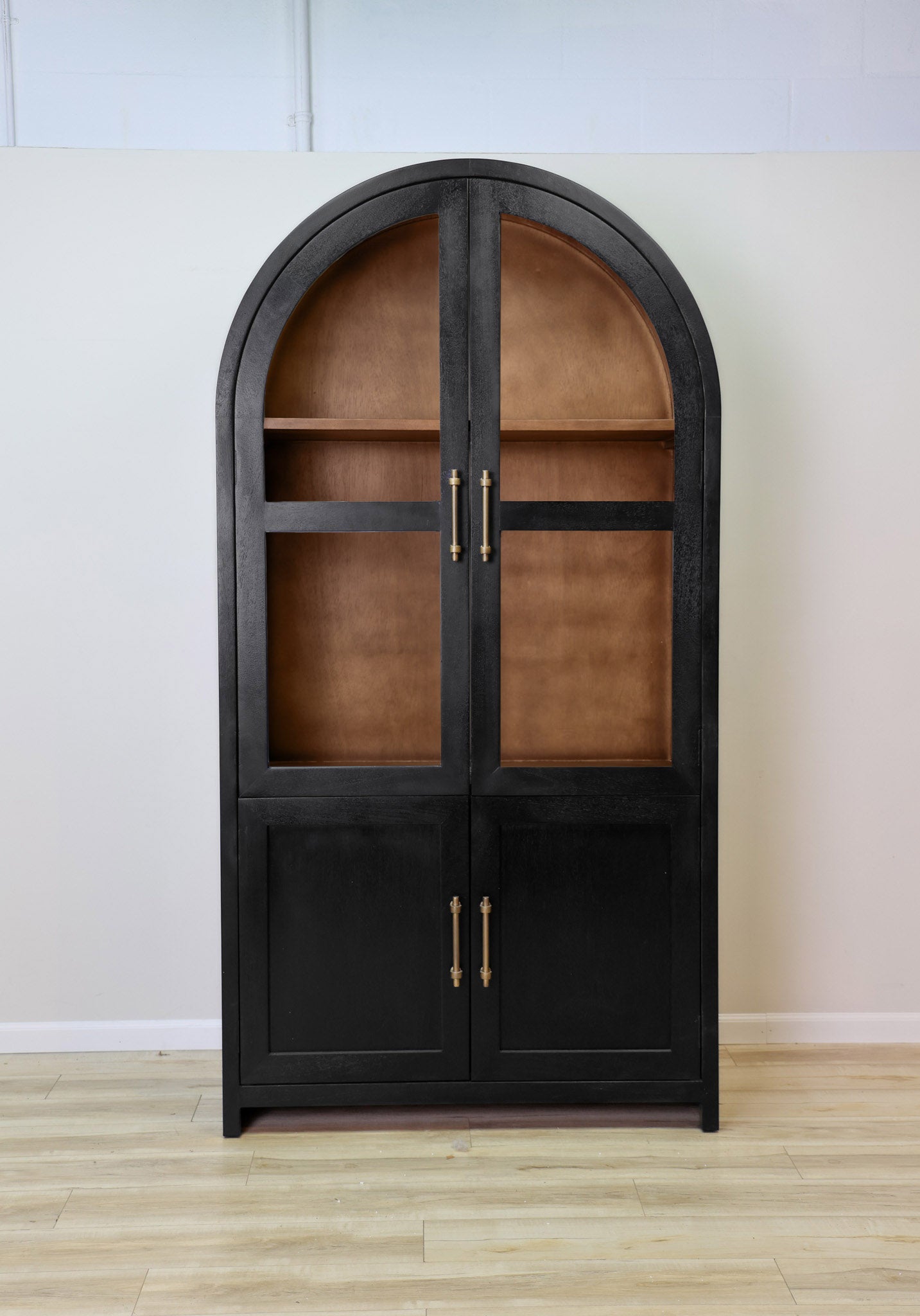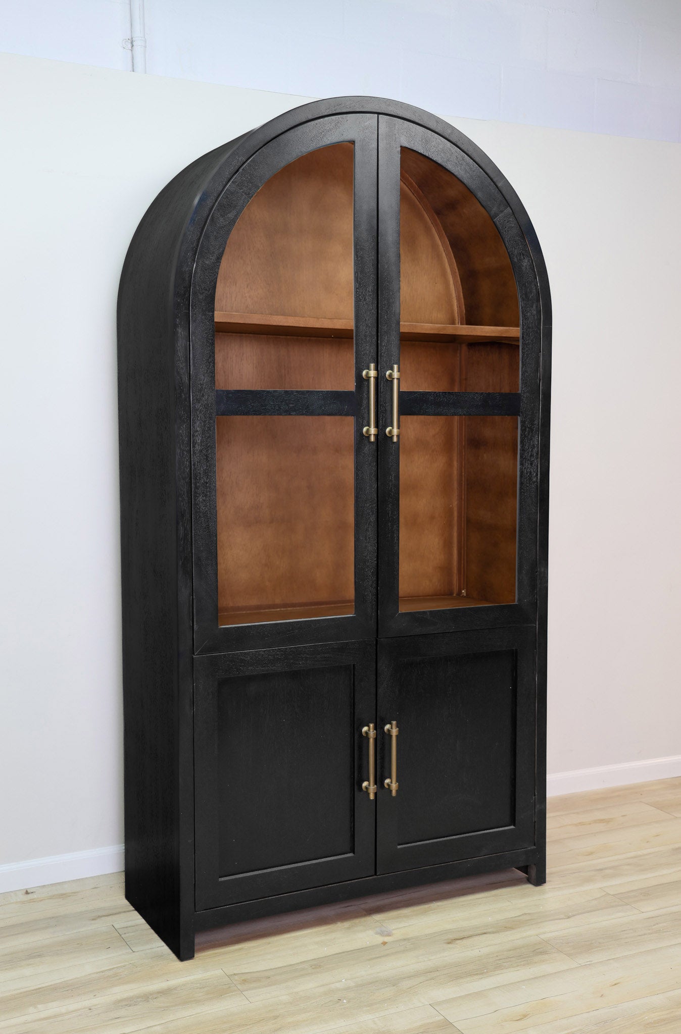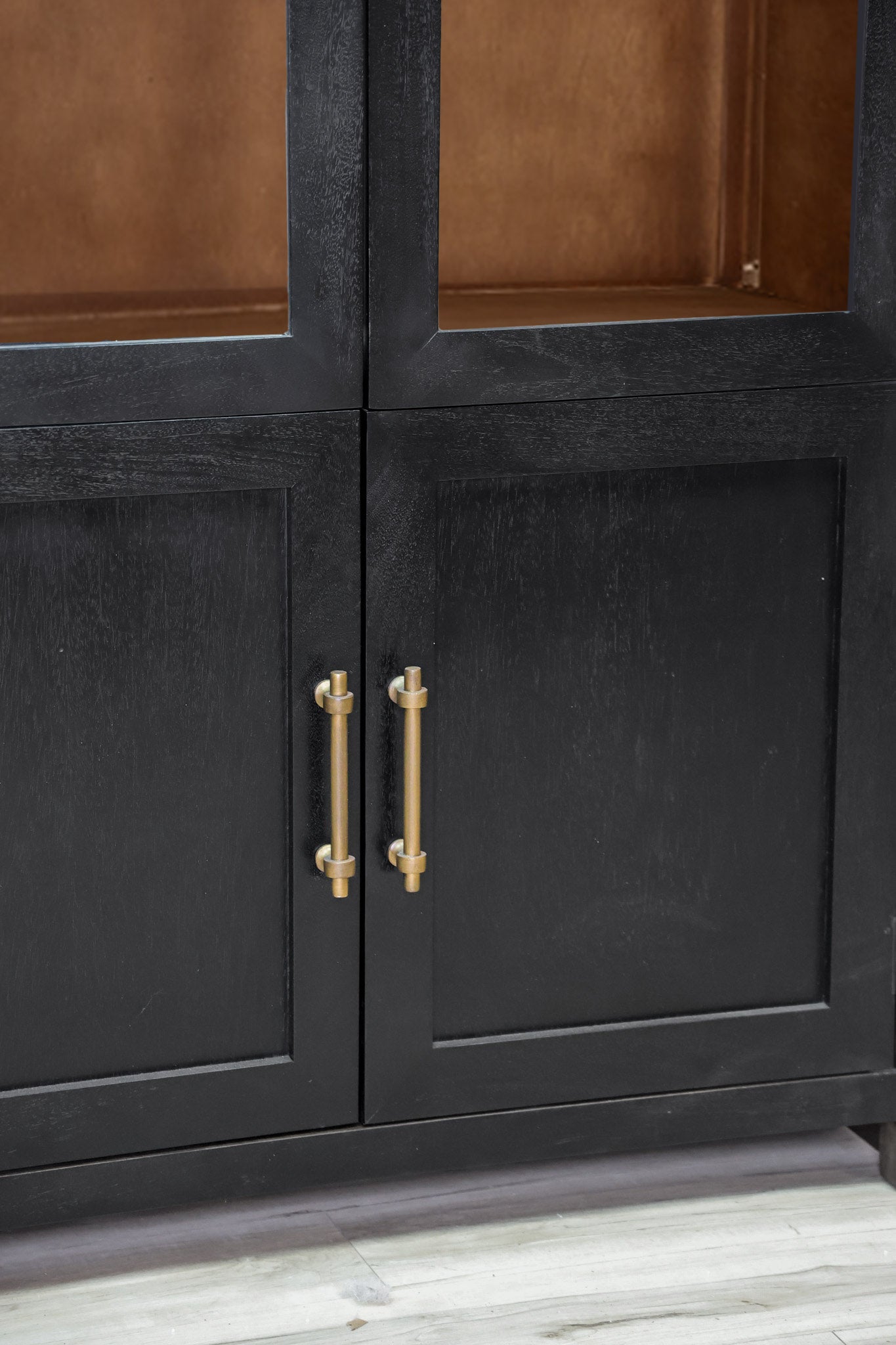 Meet the definition of moody elegance with this Dwell & Company original design! The Theodore stands tall and mighty with its solid mango wood build, paired with a black finish on the exterior and a warm brown on the interior to give a beautiful contrasting look. Finished off with gold fixtures to maximize its regal and elegant feel! Its beauty doesn't mean it sacrifices its function - with adjustable shelves and hinges, you can decide how best to make it work for your space. Don't miss the chance to add this incredible and function statement piece to your home!
