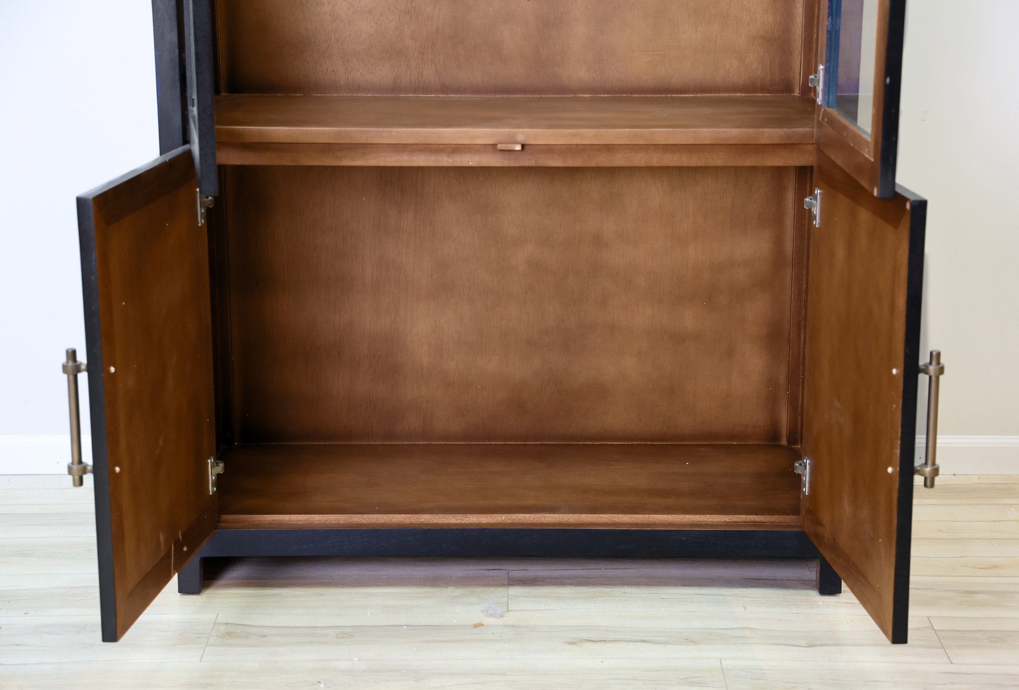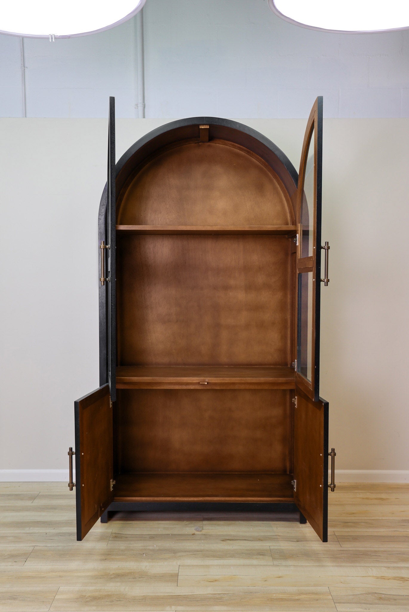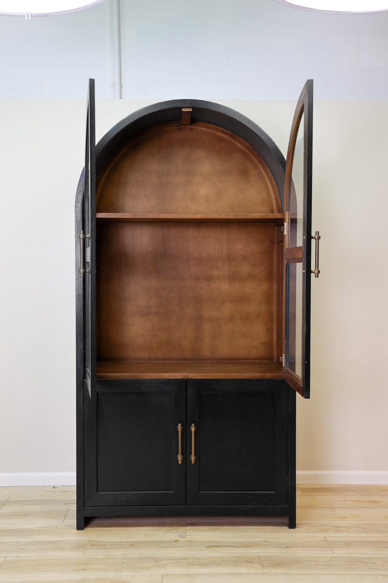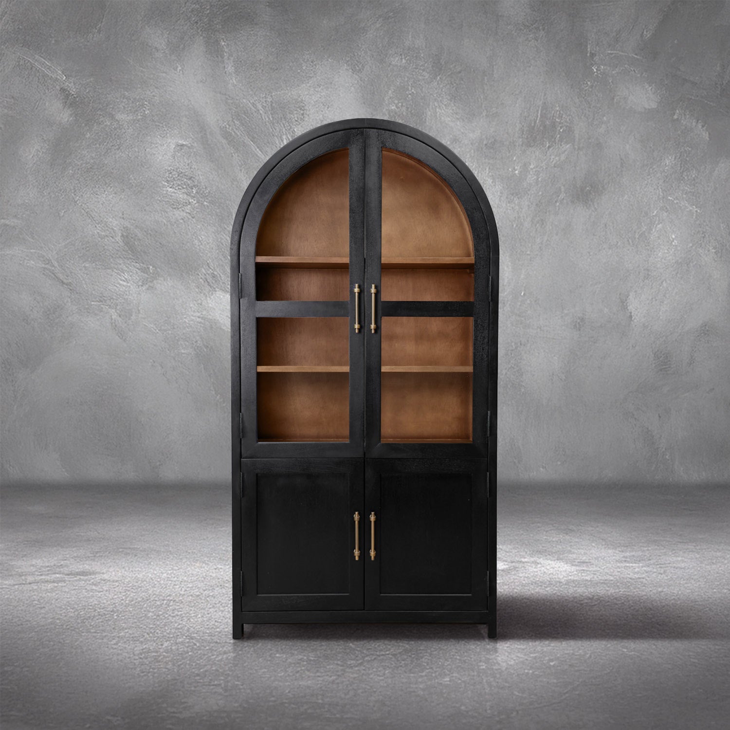 Meet the definition of moody elegance with this Dwell & Company original design! The Theodore stands tall and mighty with its solid mango wood build, paired with a black finish on the exterior and a warm brown on the interior to give a beautiful contrasting look. Finished off with gold fixtures to maximize its regal and elegant feel! Its beauty doesn't mean it sacrifices its function - with adjustable shelves and hinges, you can decide how best to make it work for your space. Don't miss the chance to add this incredible and function statement piece to your home!