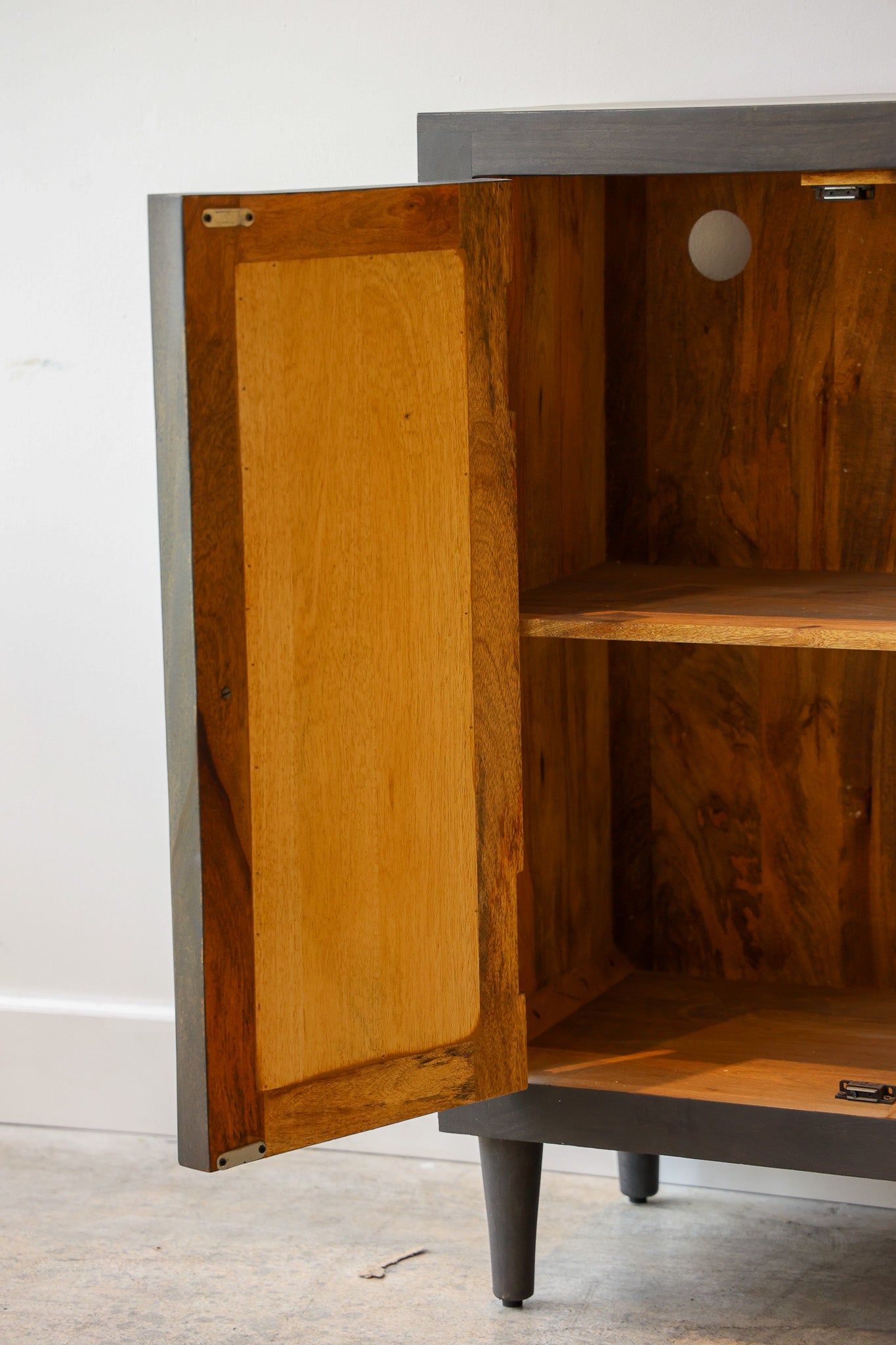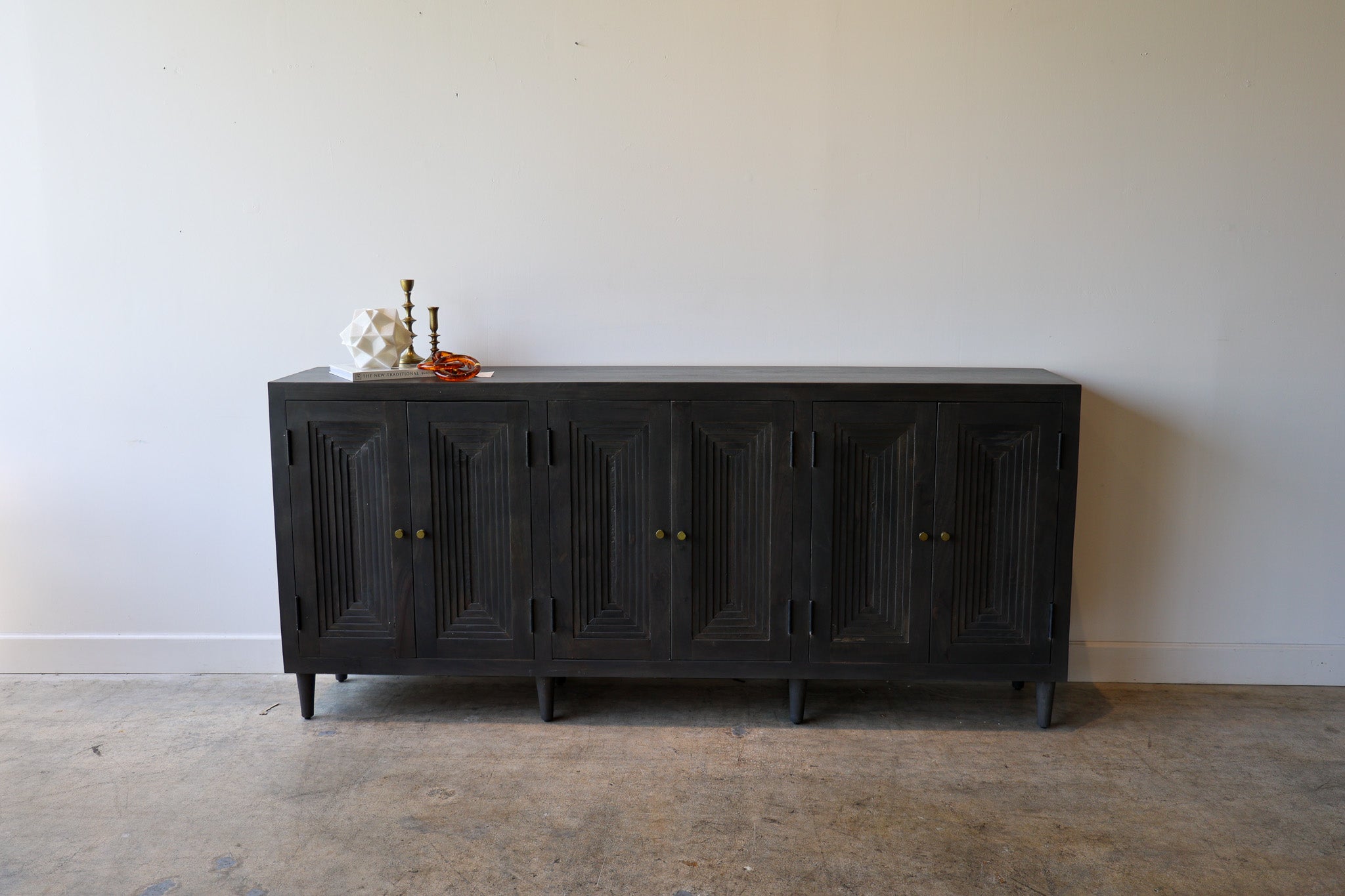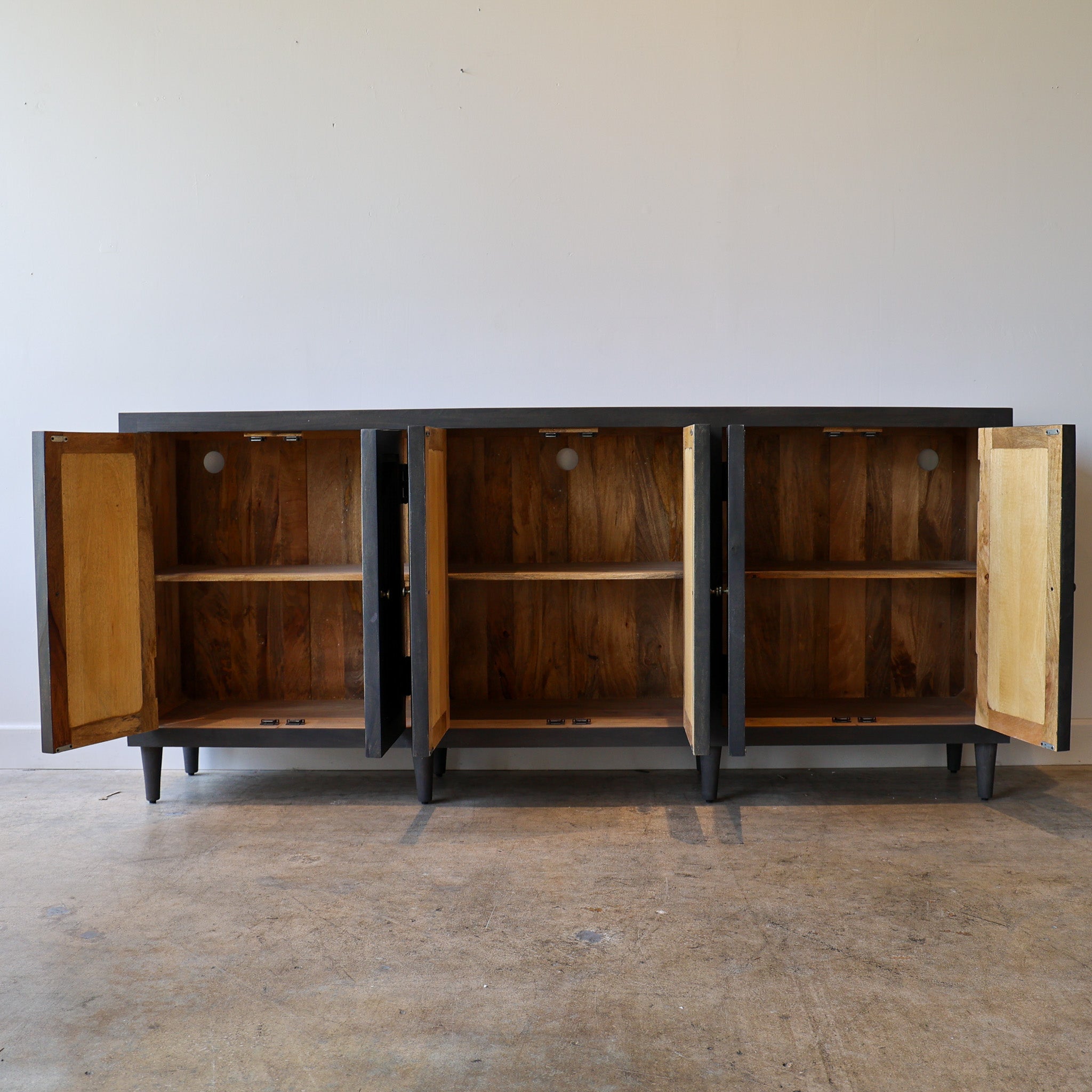 Crafted with solid wood, the Tristan Credenza offers both durability and style. Keep your space organized and clutter-free with this expertly designed piece, perfect for any home or office setting. Enjoy the benefits of a sturdy and timeless addition to your furniture collection.