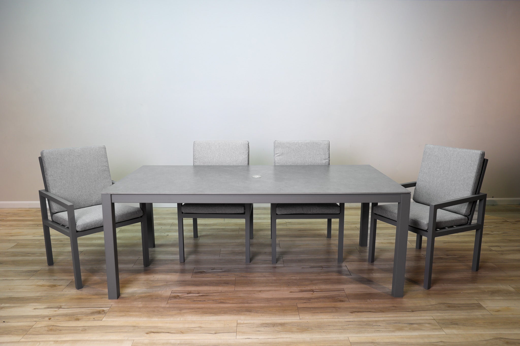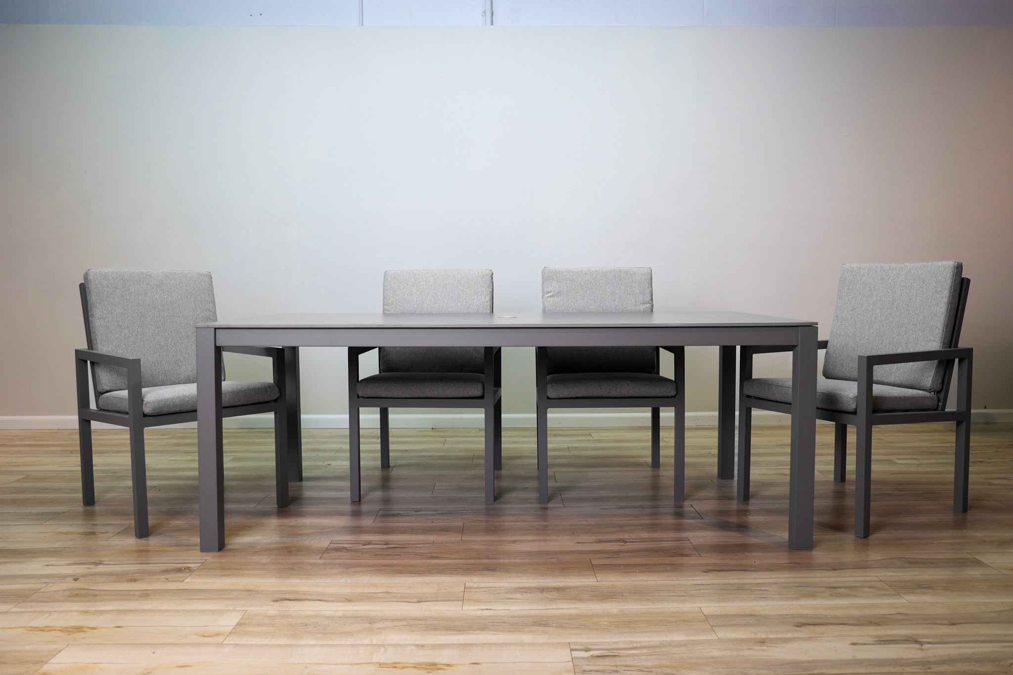 Add a touch of sleek and simple elegance to your outdoor space with the Tulum Outdoor Dining Table! Made of sturdy metal thats resistant to the extremes of the outdoors, this versatile dining table is sure to elevate your alfresco space!
